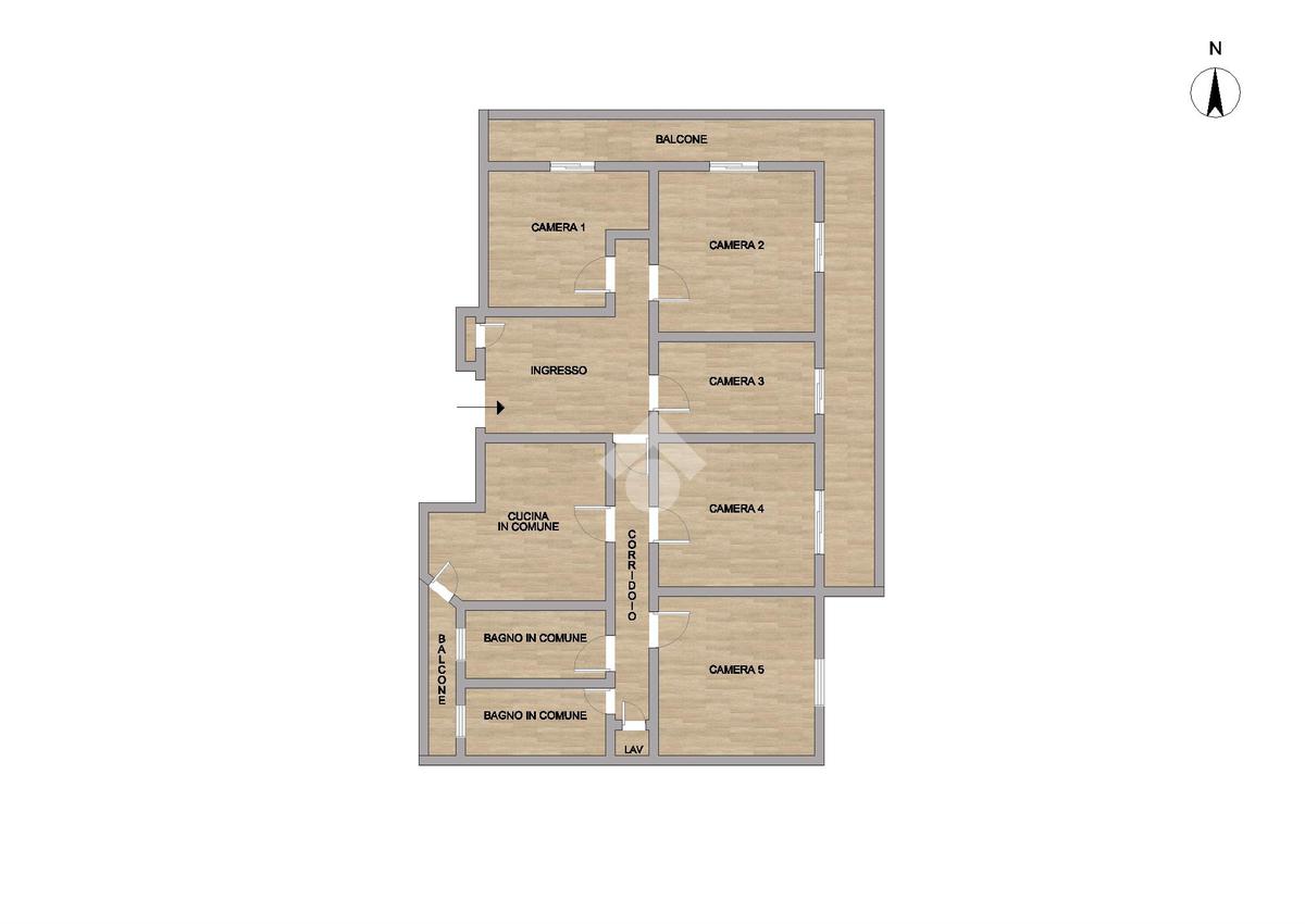 Le camere fanno parte di un unico appartamento ubicato ad un 2° piano ascensorato, composto da 5 stanze oltre alle zone comuni, quali cucina abitabile, due bagni completi con doccia e lavanderia/ripostiglio da condividere con gli altri coinquilini.