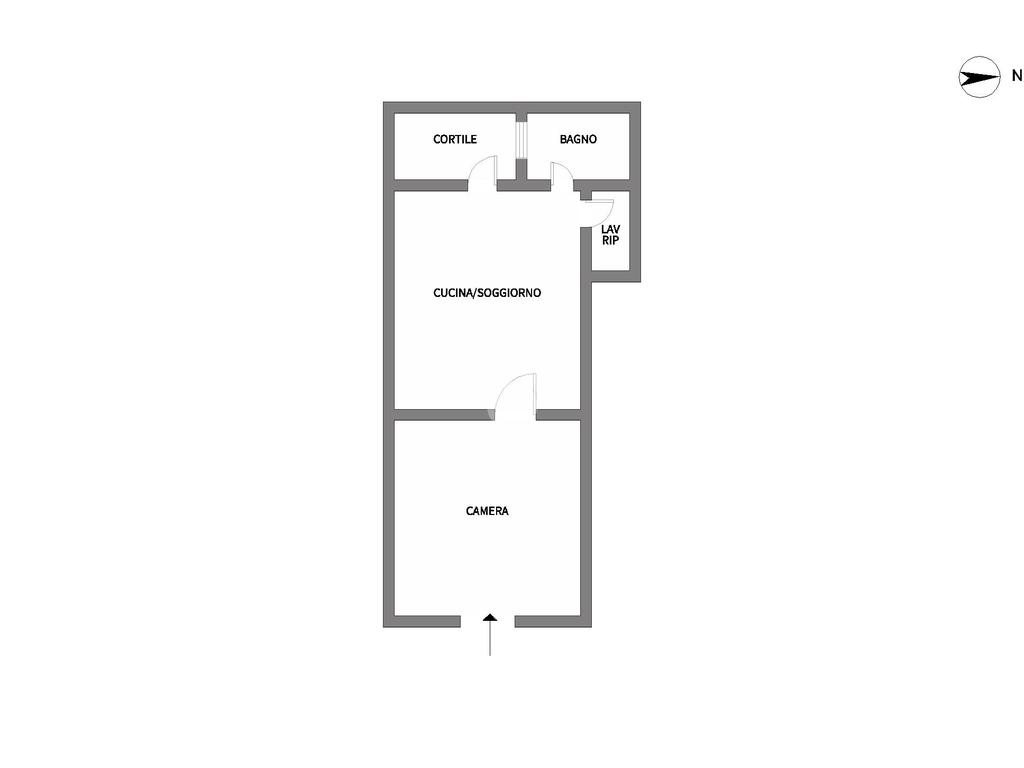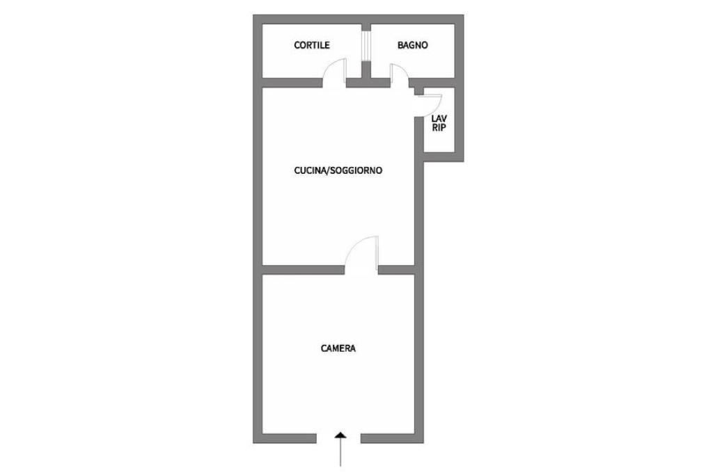 La casa è composta da una grande camera, cucina/soggiorno, bagno e lavanderia - ripostiglio. Inoltre è dotata anche di un cortile di proprietà.