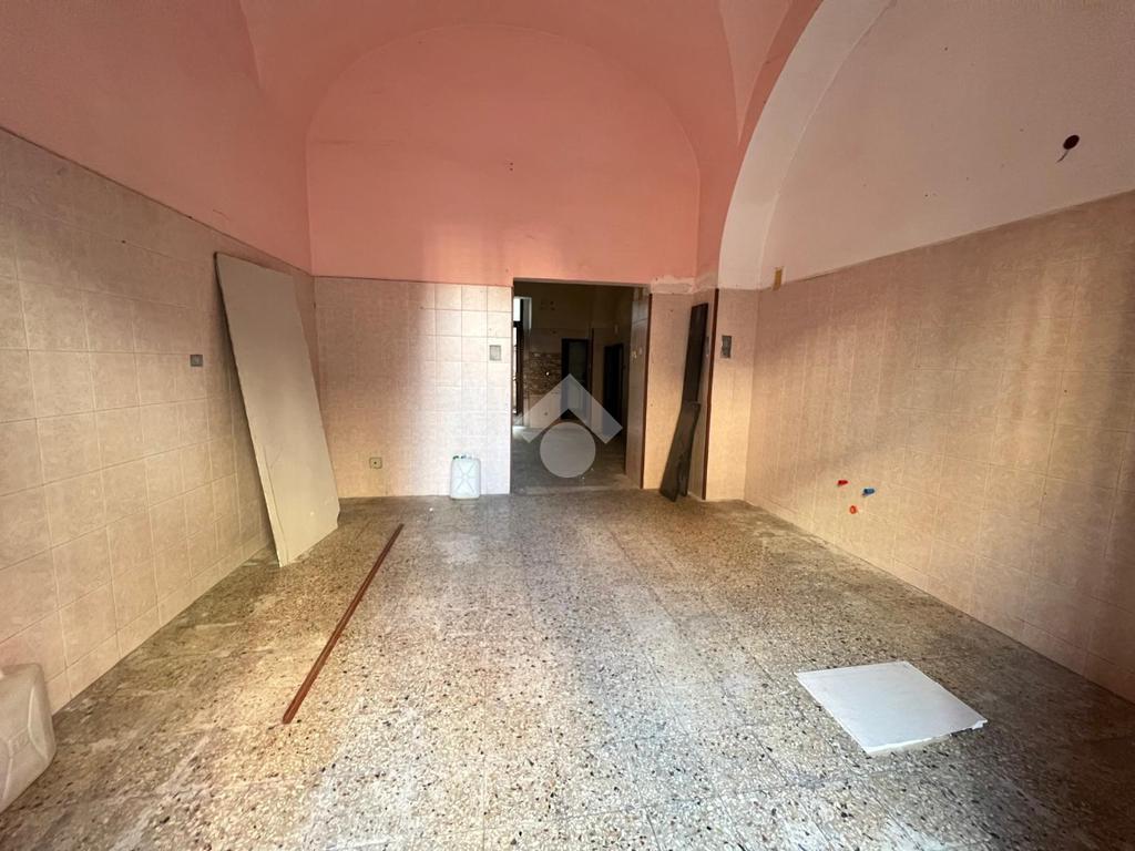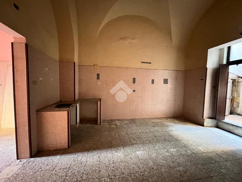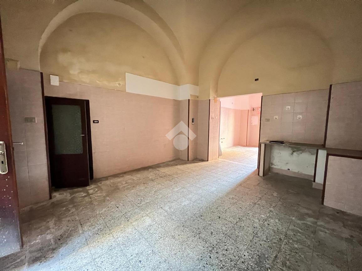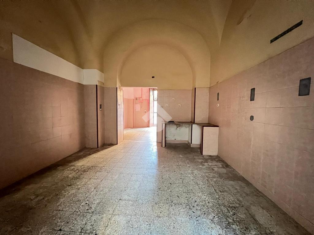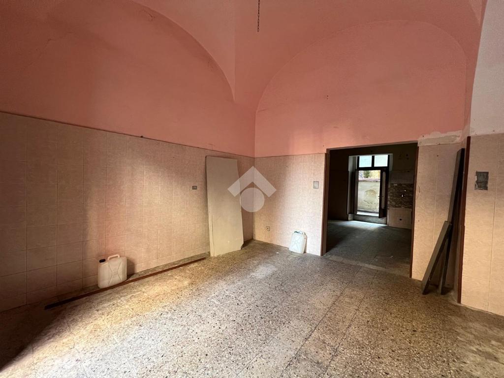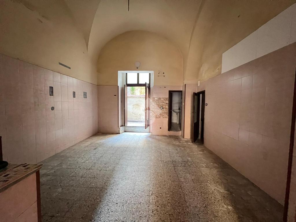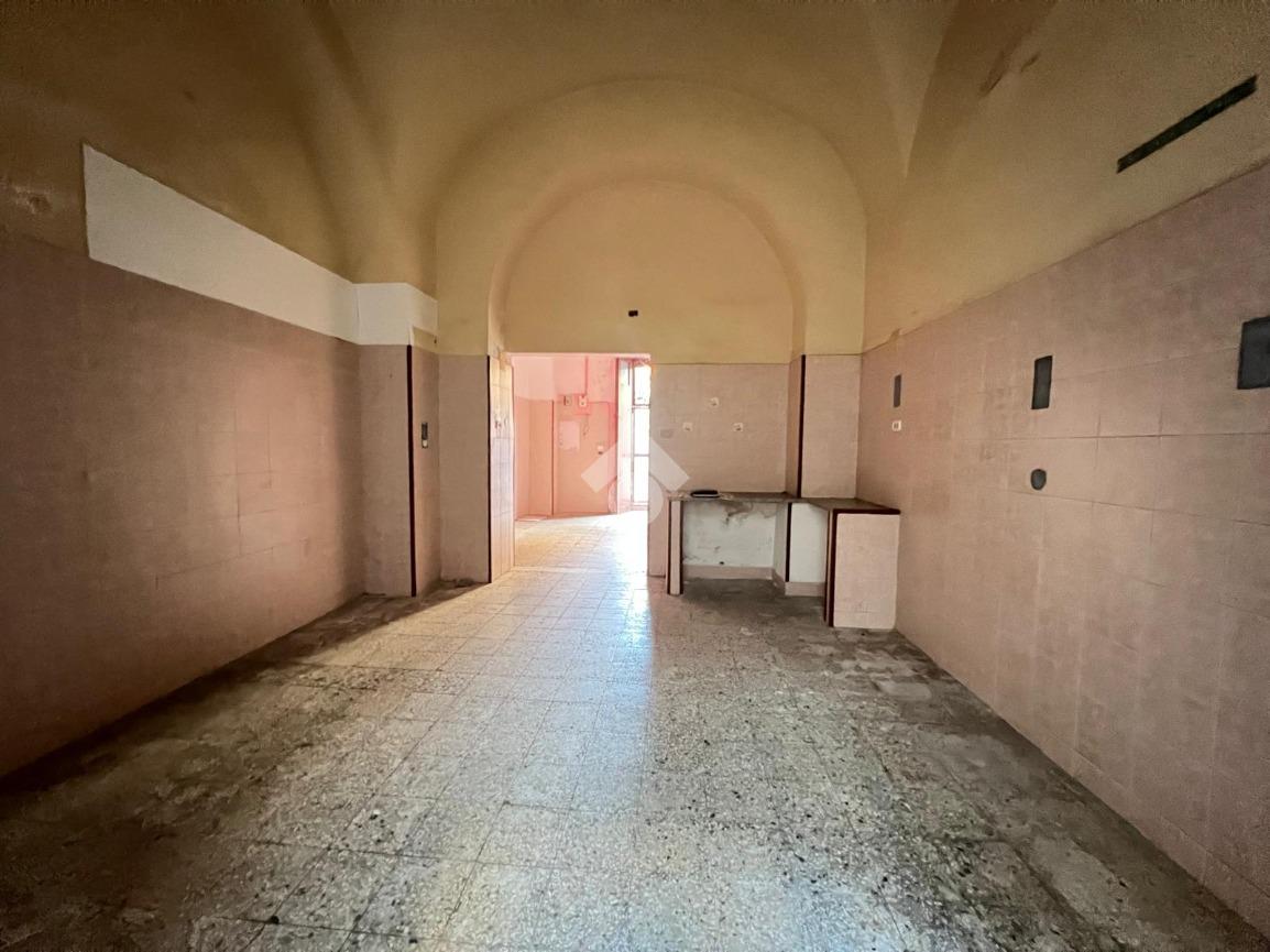 L'immobile è ubicato al piano terra di un edificio costruito nel 1940, mantenendo le caratteristiche dell'epoca come la struttura in pietra lavica ed i tetti a volta.