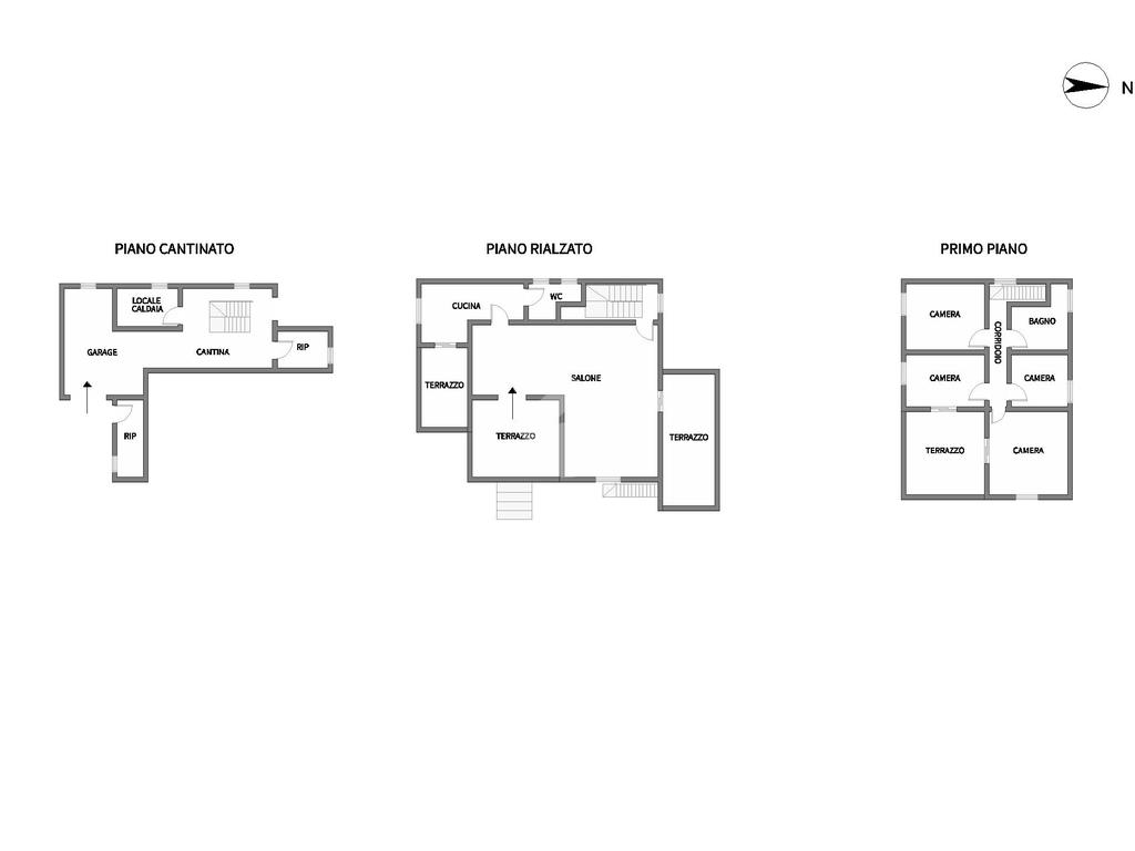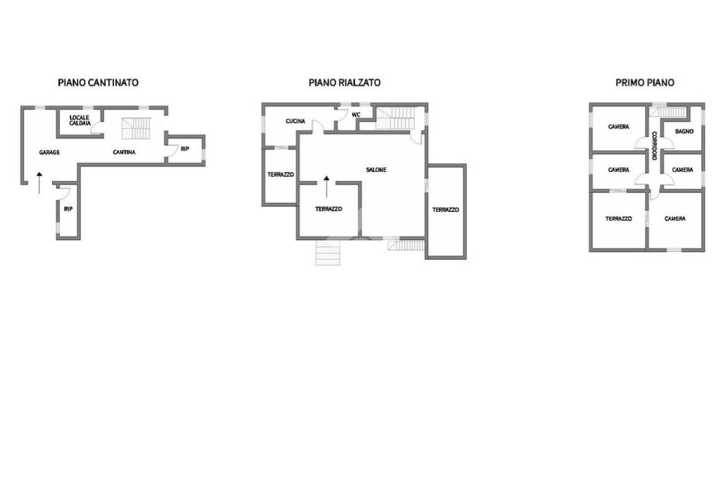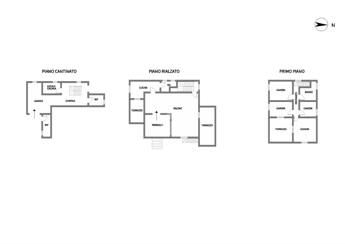 Piano Terra (Zona Giorno): L'ingresso principale conduce ad un luminoso salone triplo con camino. Completano il piano una cucina abitabile ed un servizio con lavanderia.